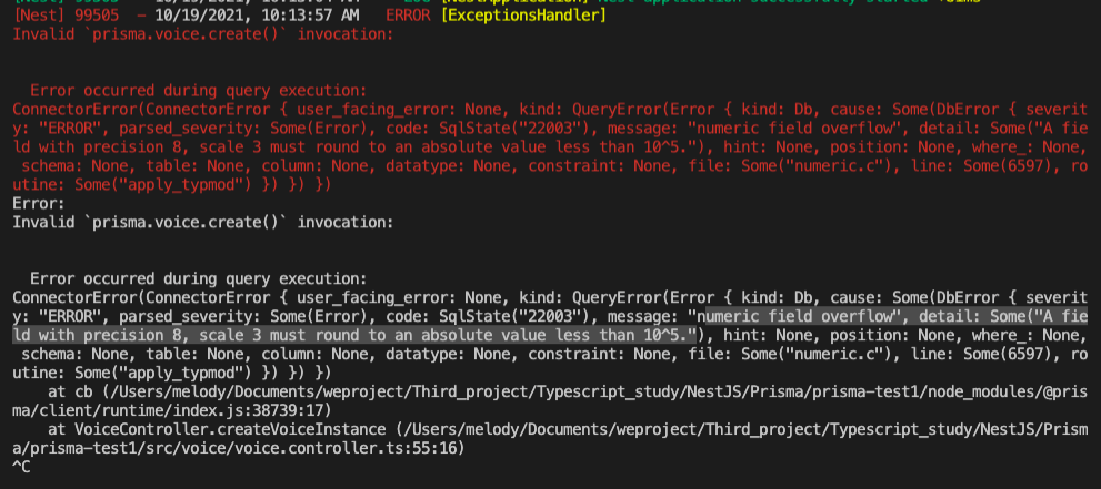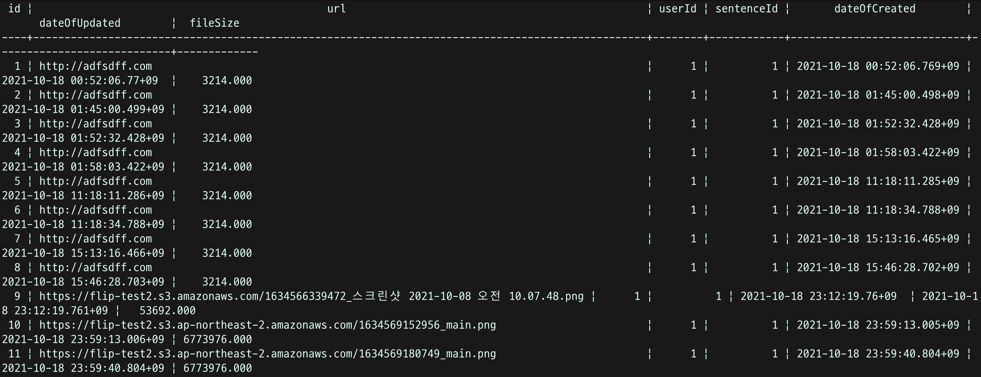1. 한가지는, fileSize필드이 타입인 decimal값의 범위를 너무 작게 준것 때문이었고,