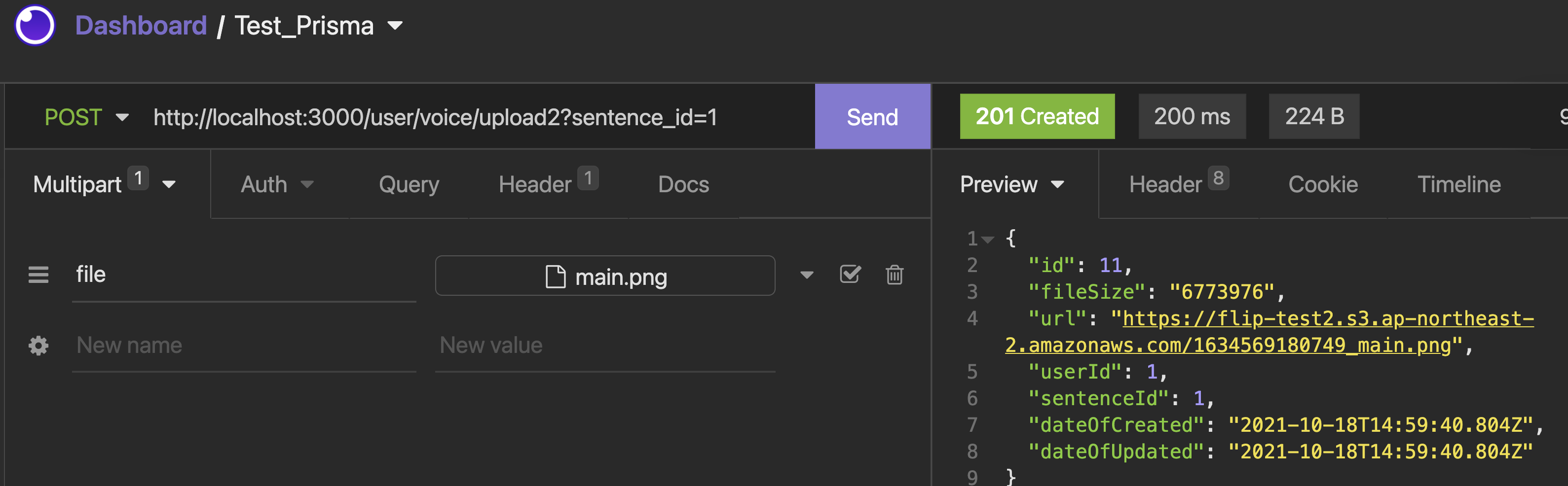 prisma.voice.create 메소드 입니다.