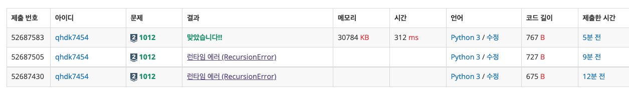 setrecursionlimit함수를 통해 limit을 재설정해주면 해결!
