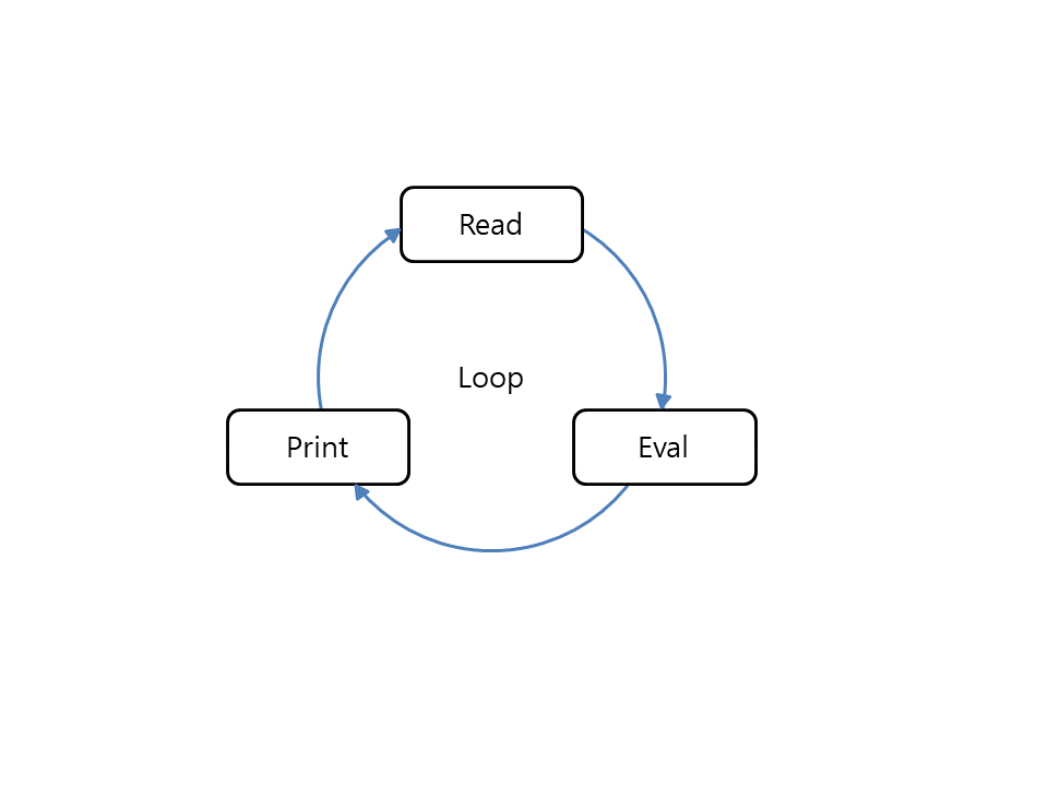 | 참고 | 대화형 셸 파이썬 셸은 파이썬 인터프리터와 대화하듯이 코드를 처리한다고 해서 대화형 셸(interactive shell) 또는 인터렉티브 모드(interactive mode)라고도 부릅니다. 특히 이런 방식을 코드를 읽고, 평가(계산, 실행)하고, 출력한다고 해서 REPL(Read-Eval-Print Loop)이라고 함. ![]() |
