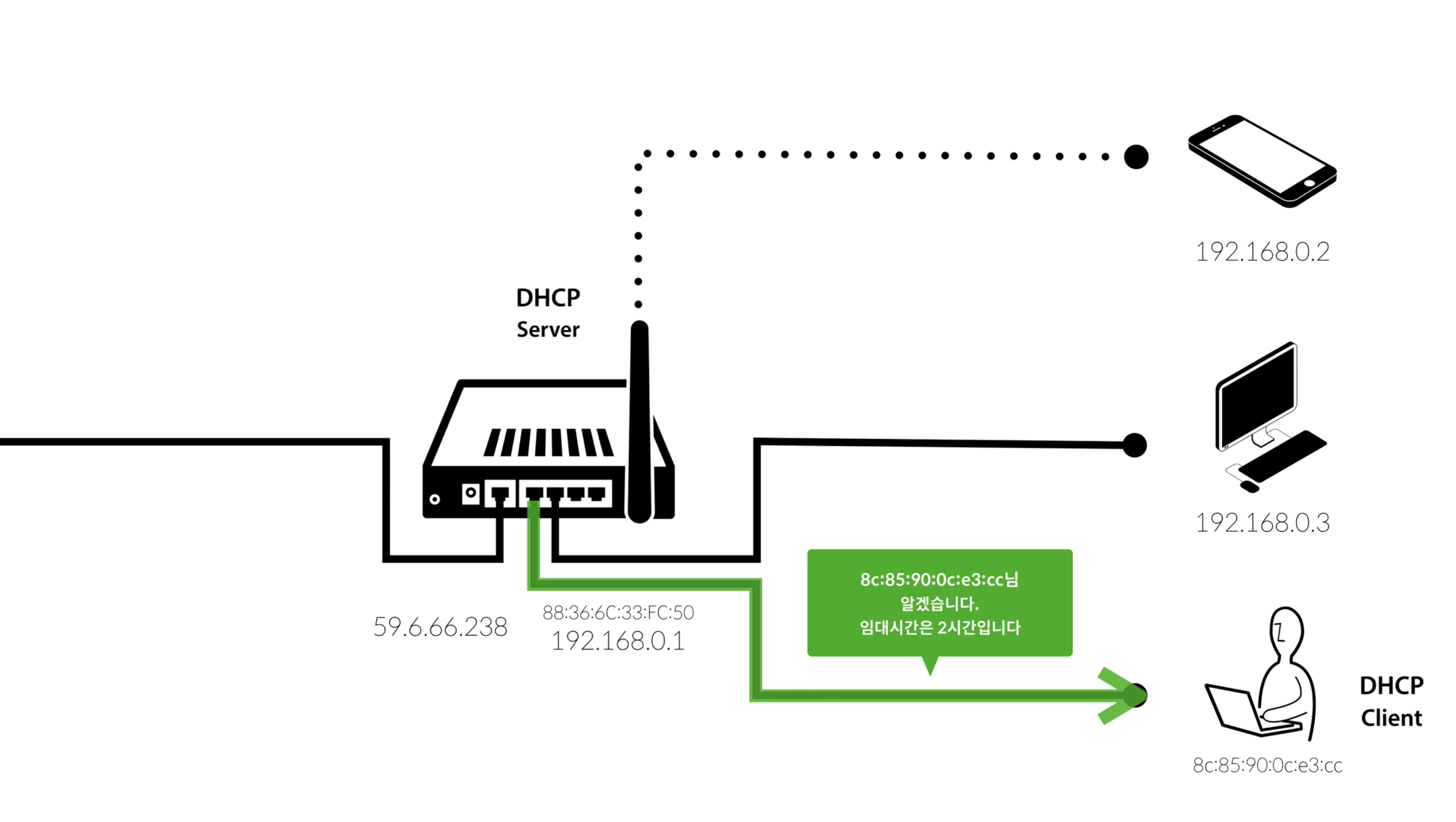 2. DHCP server -> DHCP client 사용가능한 아이피 주소 전달