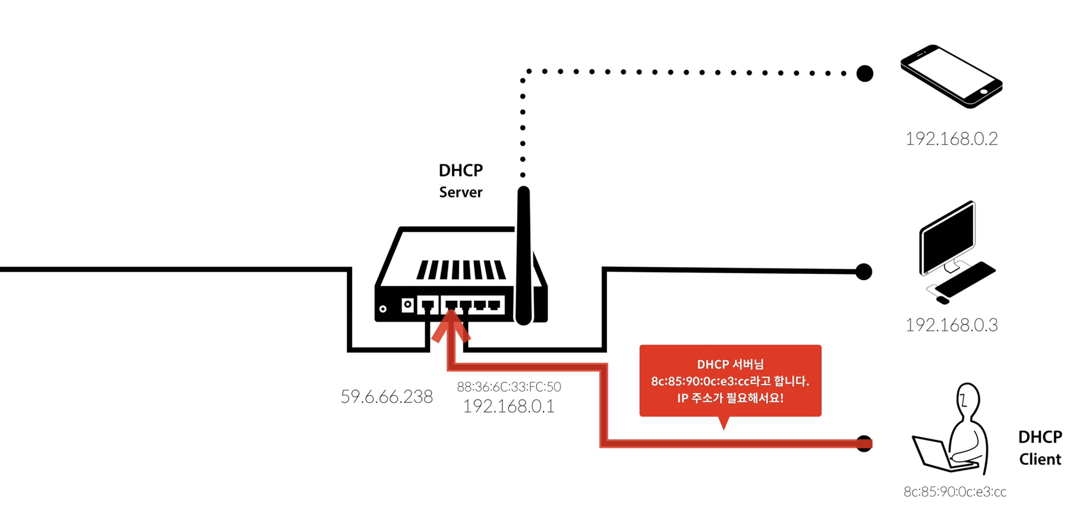1. DHCP client -> DHCP server 아이피 주소 요청