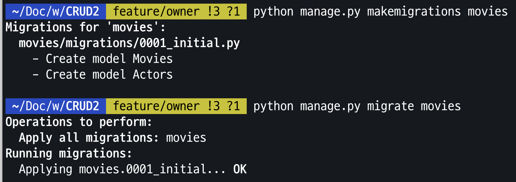 python manage.py migrate movies(app의 이름)